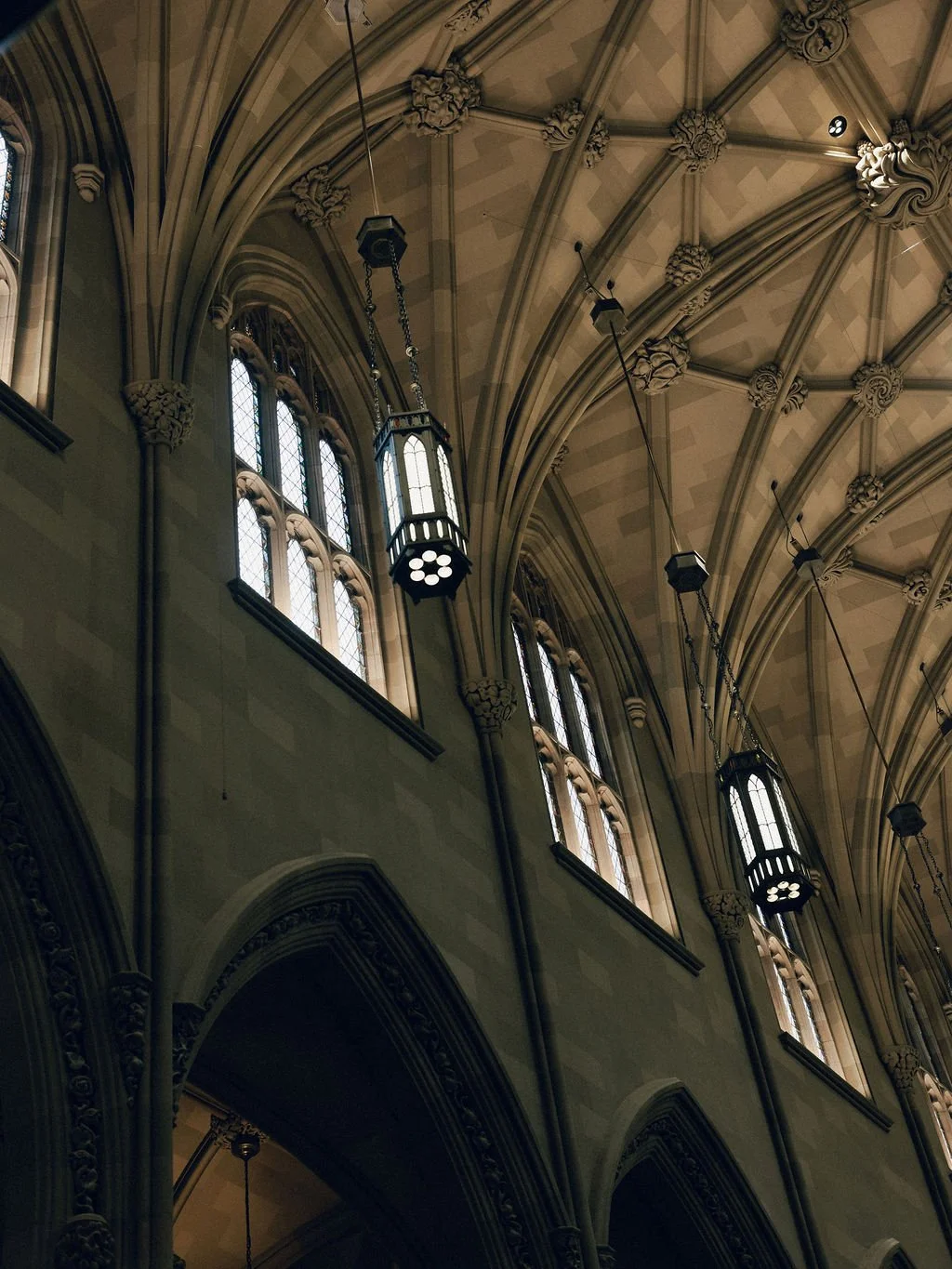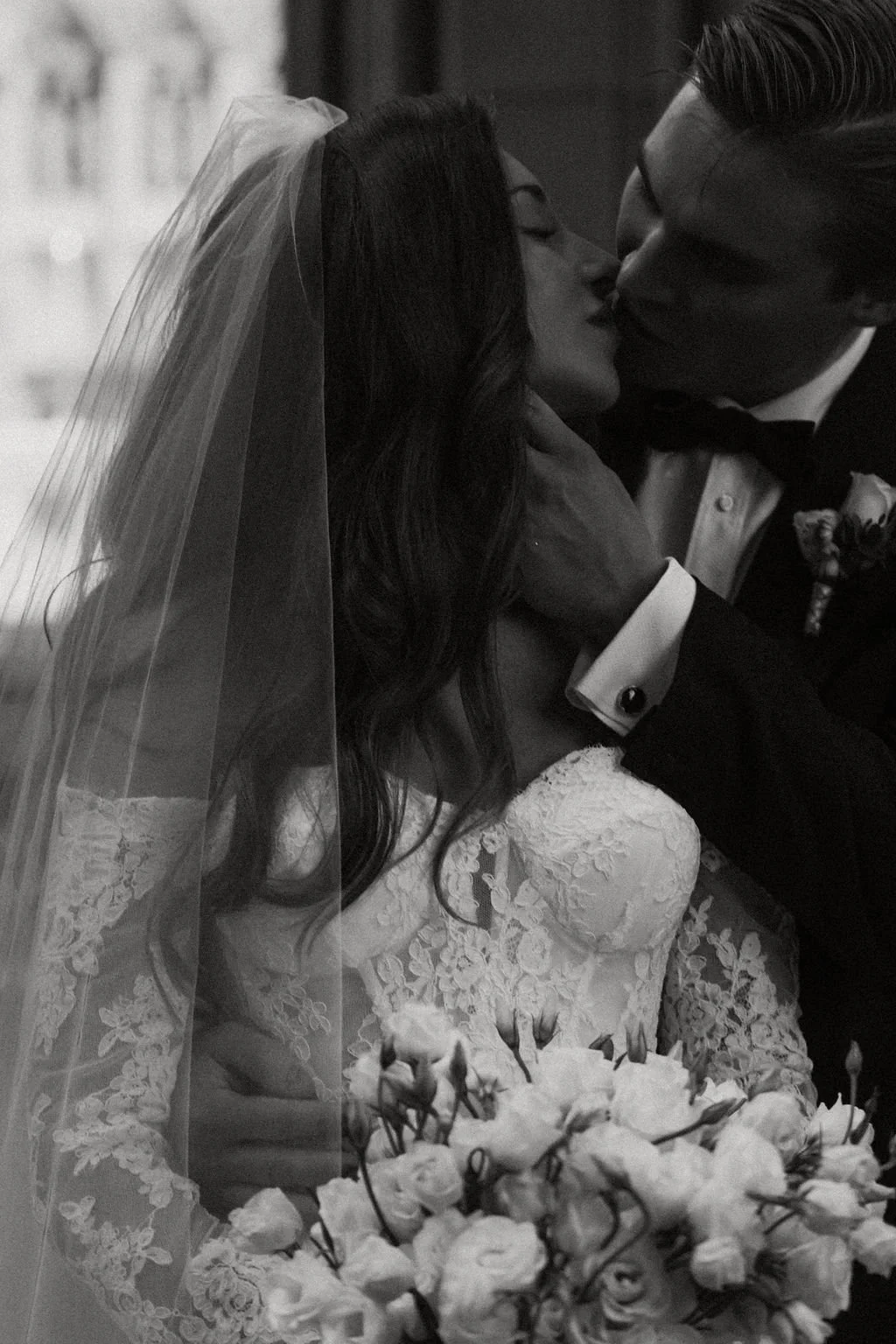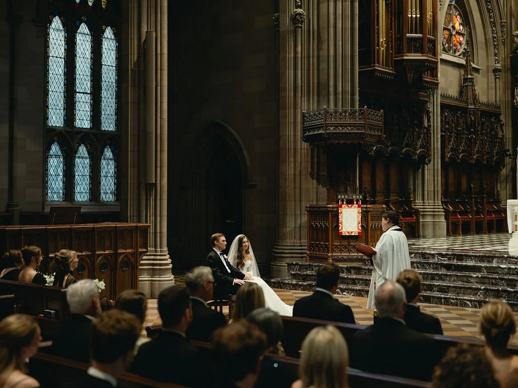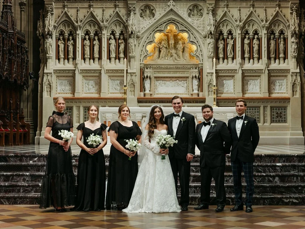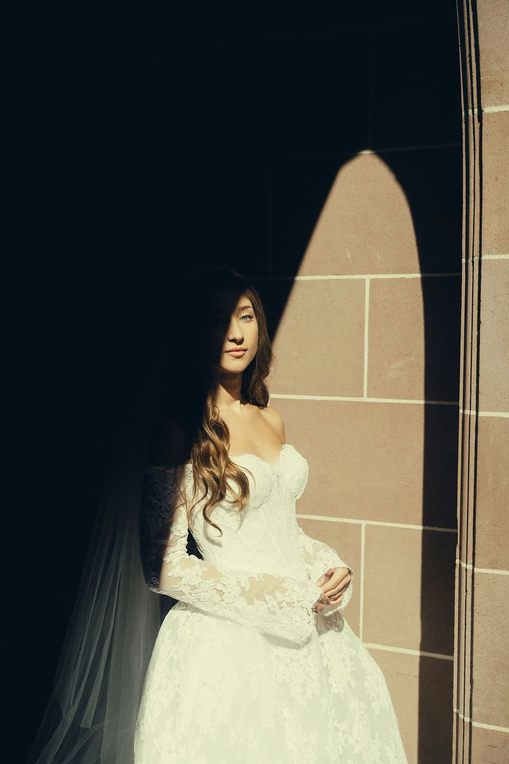 Rebecca and Spencer were married at Trinity Church, which is even more beautiful in person. The architecture is stunning from every angle - towering arches, detailed stonework, and stained-glass windows that fill the space with the softest, most atmospheric light. The whole church feels regal and calm - its deep rooted history settling around you.