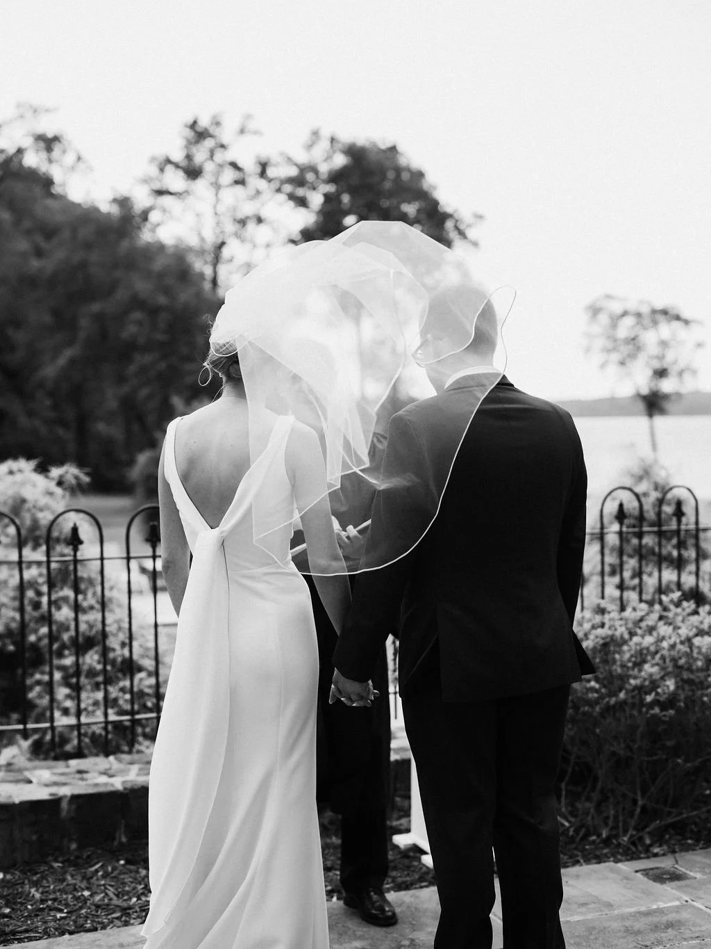 As spring gave way to warmer days, Lindsay and Nicholas were married, a soft breeze rolling in from the bay. The cloudy mid-morning, which had scattered a few gentle raindrops, shifted into a golden haze as they read their vows, light spilling across the water. Surrounded only by their closest friends and family, the evening unfolded with quiet elegance, candlelight dancing down the length of the table, casting a warm glow over the joy, the laughter, and the tender moments exchanged between loved ones.