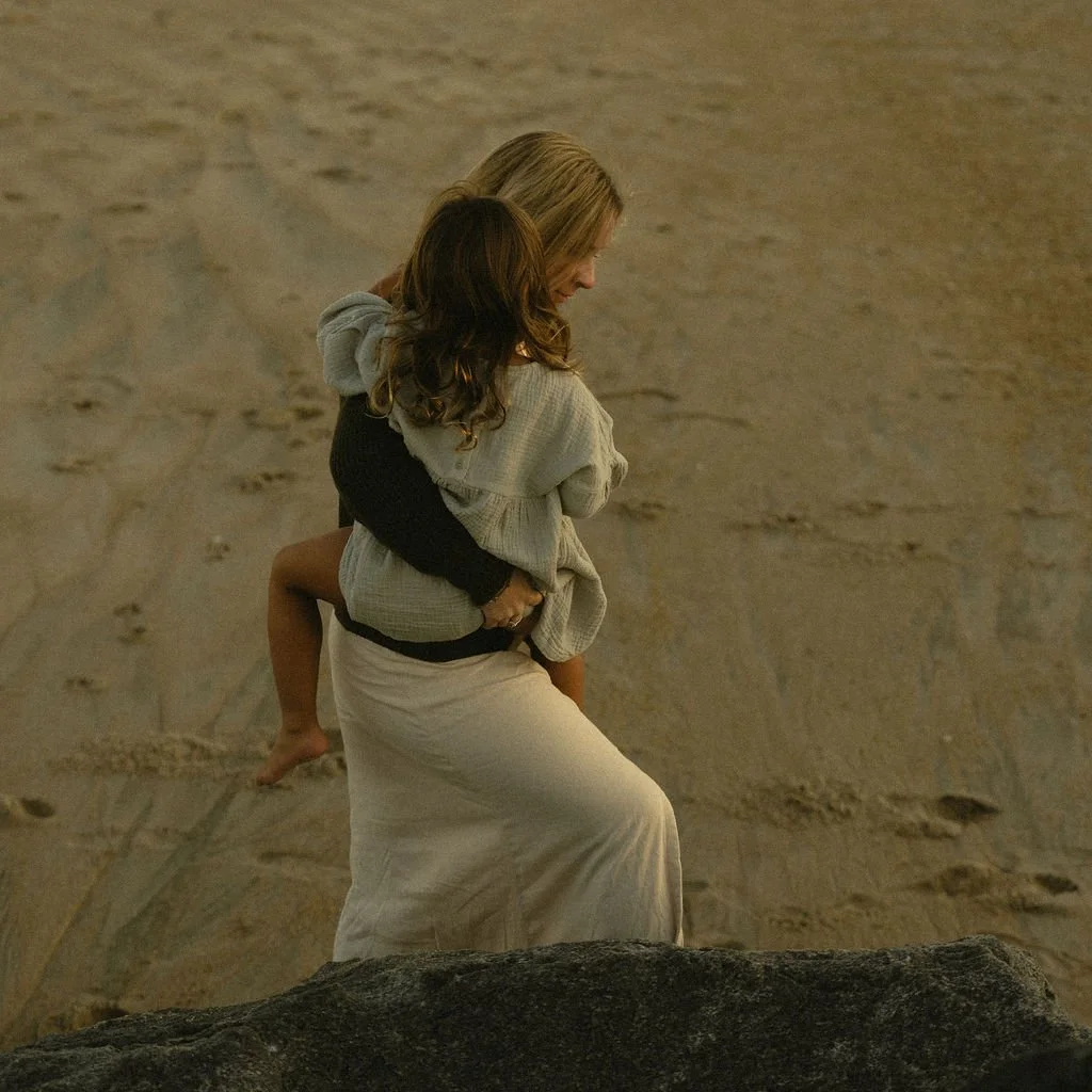 We used this approach for Joanna and her three kiddos, meeting at sunset on a quiet stretch of beach, where the tide hummed against the shore and the sky melted into soft pastels. There was no agenda, just space for them to roam, explore, and exist as they are.