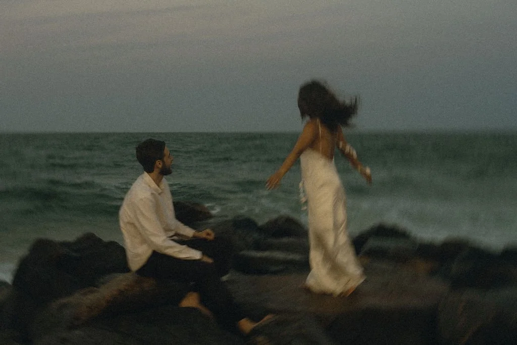 I had the incredible privilege of having Blanchy and Arthur fly all the way from Florida to Lewes, Delaware for their engagement session. From the moment we met, it was clear that their love and affection for each other were undeniable. As the sun began to set in September, the sky transformed into a canvas of soft pastels - pink, lavender, and orange hues blended seamlessly. The ocean mist rolled in, adding a gentle haze that softened the entire scene. It was such a joy to capture this chapter of their story.